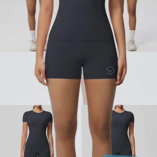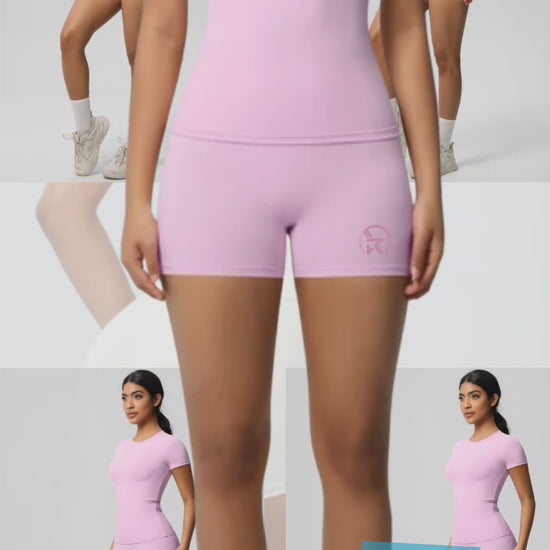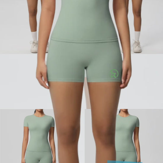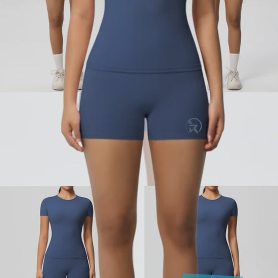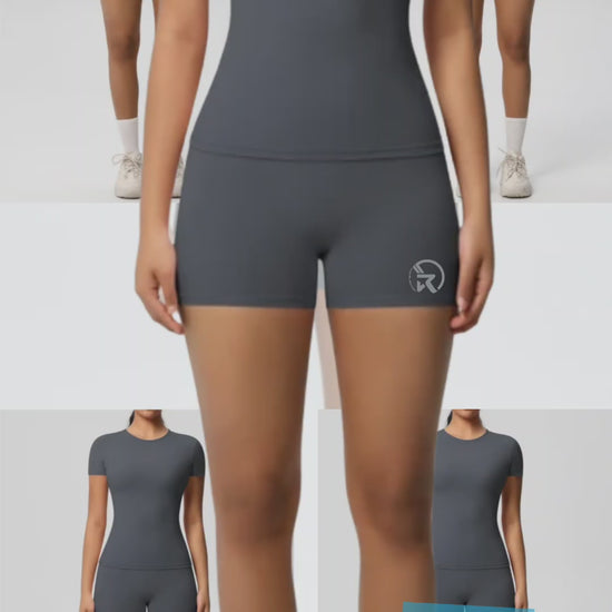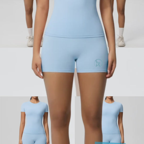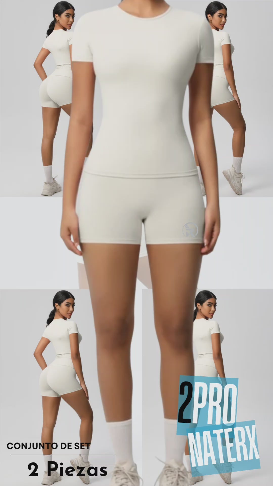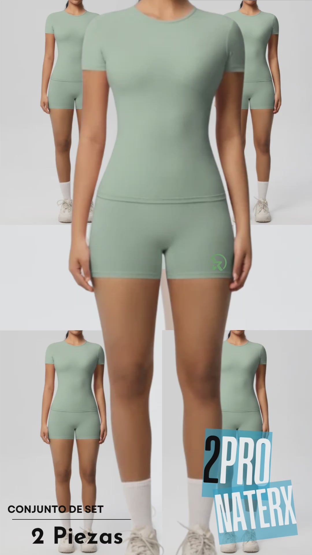 Este conjunto deportivo está diseñado para ofrecer un ajuste preciso que realza la figura sin limitar el movimiento. Su camiseta de manga corta, de corte anatómico, se adapta al cuerpo brindando comodidad, frescura y soporte ligero, mientras que el short de tiro medio proporciona seguridad y libertad durante el entrenamiento.